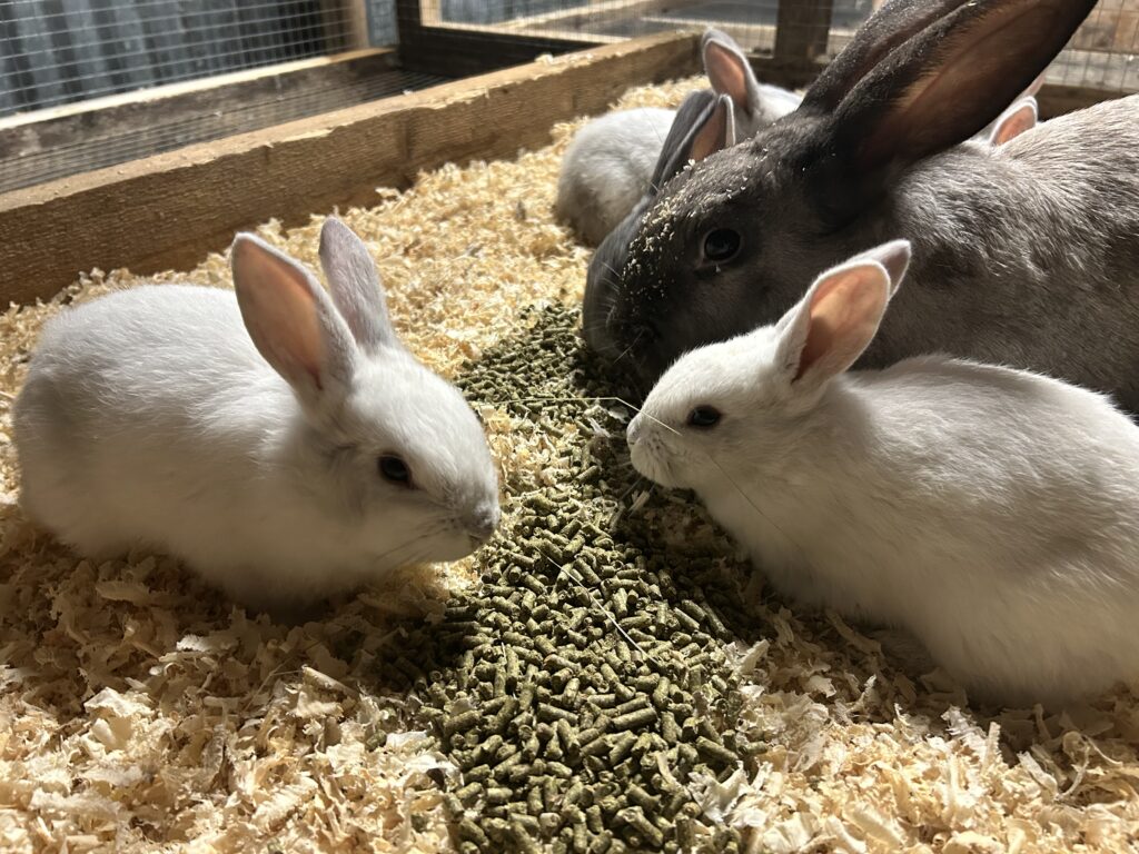 We place great importance on meeting the ecological requirements of each species when it comes to housing and care. Our pigs live outdoors with space to move and root, our rabbits are kept in calm, well-ventilated environments, and our chickens are housed in mobile coops (7 months a year) that give them constant access to fresh pasture. These approaches not only improve animal welfare but also contribute to soil health, biodiversity, and a balanced, regenerative way of farming.