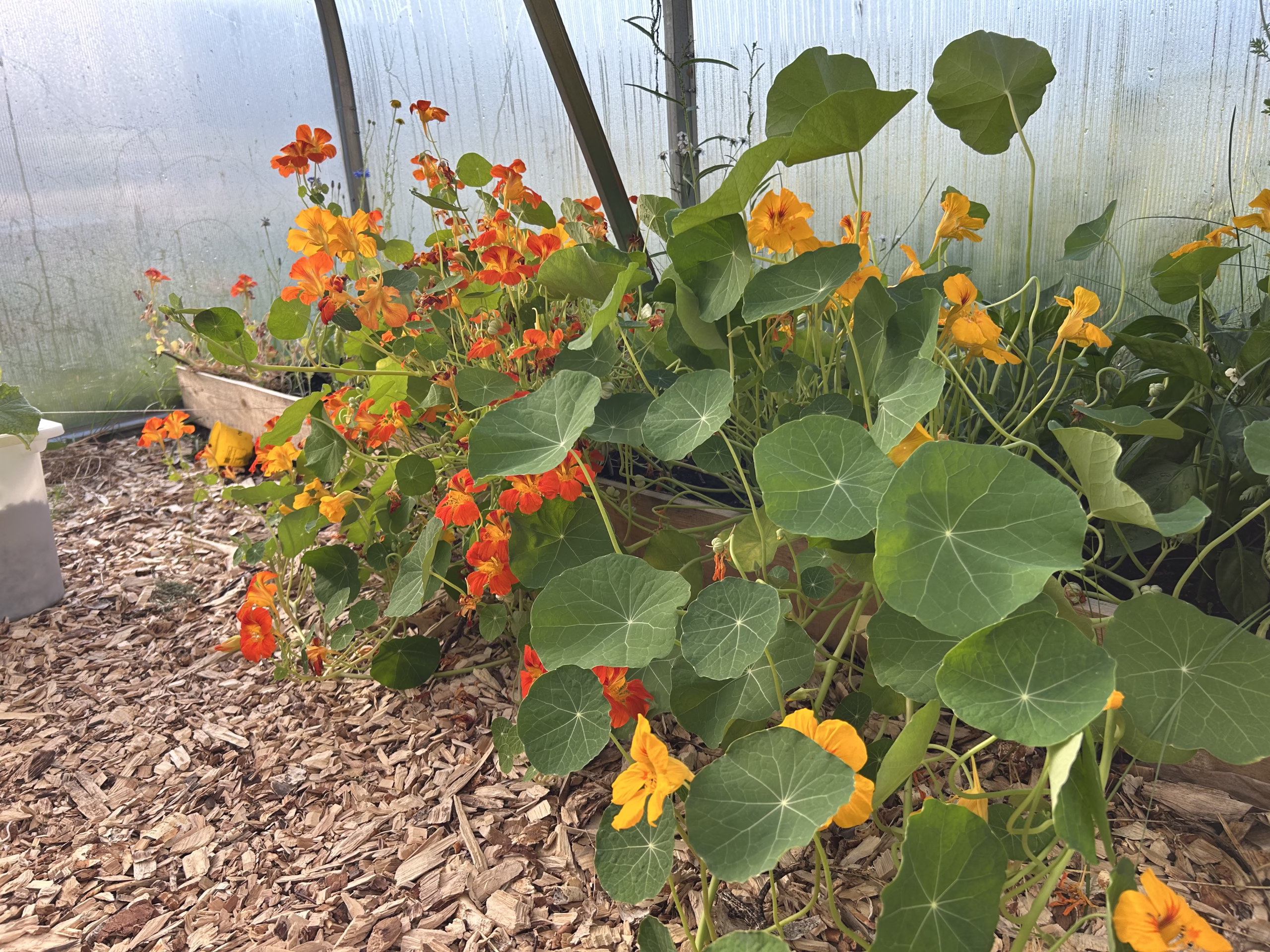 If your soil is dead, your life above will be to. And this is the case on our land. We do have grass and certain weeds, but we do not have enough life in the soil like worms, nor many birds. As we have 2 hectares of farm land at Södra Gård, we choose bit by bit of the farm to improve, step-by-step. We created a market garden close to our house, set up a greenhouse of Grohus and started a food forest. Slowly, but steady we see a change in growth and life coming back to us, and the steps taken are fairly easy. We have build a fence around our garden, but only with dead materials from the land. This way it provides shelter for small birds, insects to flourish and possibilities to build bird nests. We have also planted many flowering perennials to improve the habitat of pollinators. We can spend hours watching them hovering over our flowers. It truly gives you a fulfilling feeling.